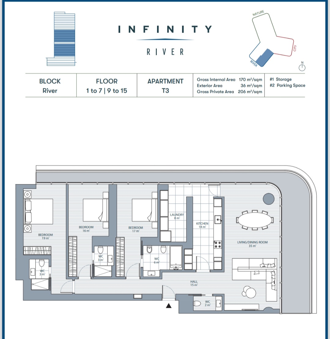 Generous areas with 206 m2 of gross floor area and 170m2 of living space, 3 suites, 36 m2 balcony, fully equipped kitchen.